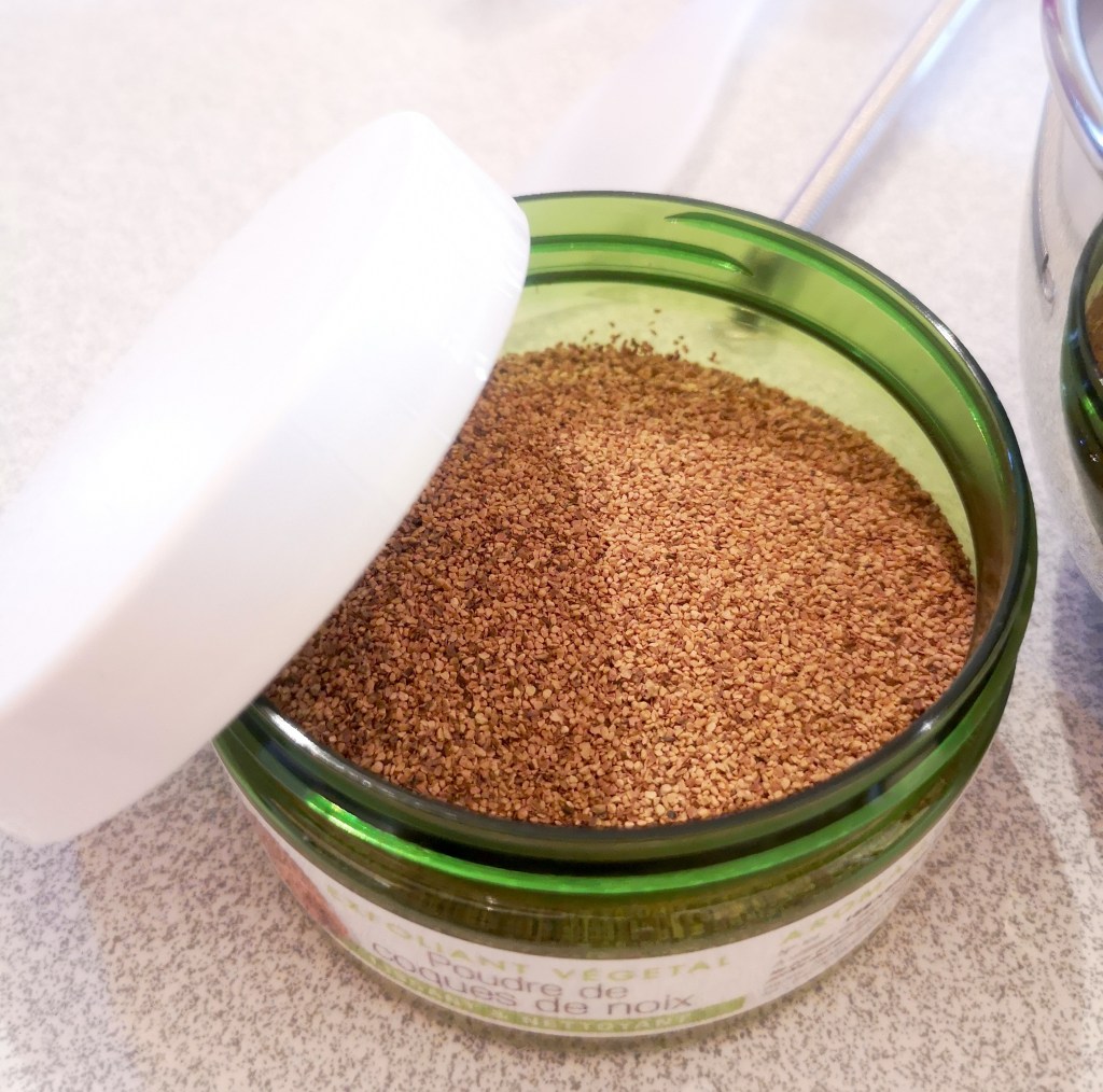 On poursuit avec la poudre de coques de noix. On y ajoute 6 doses de 2ml.