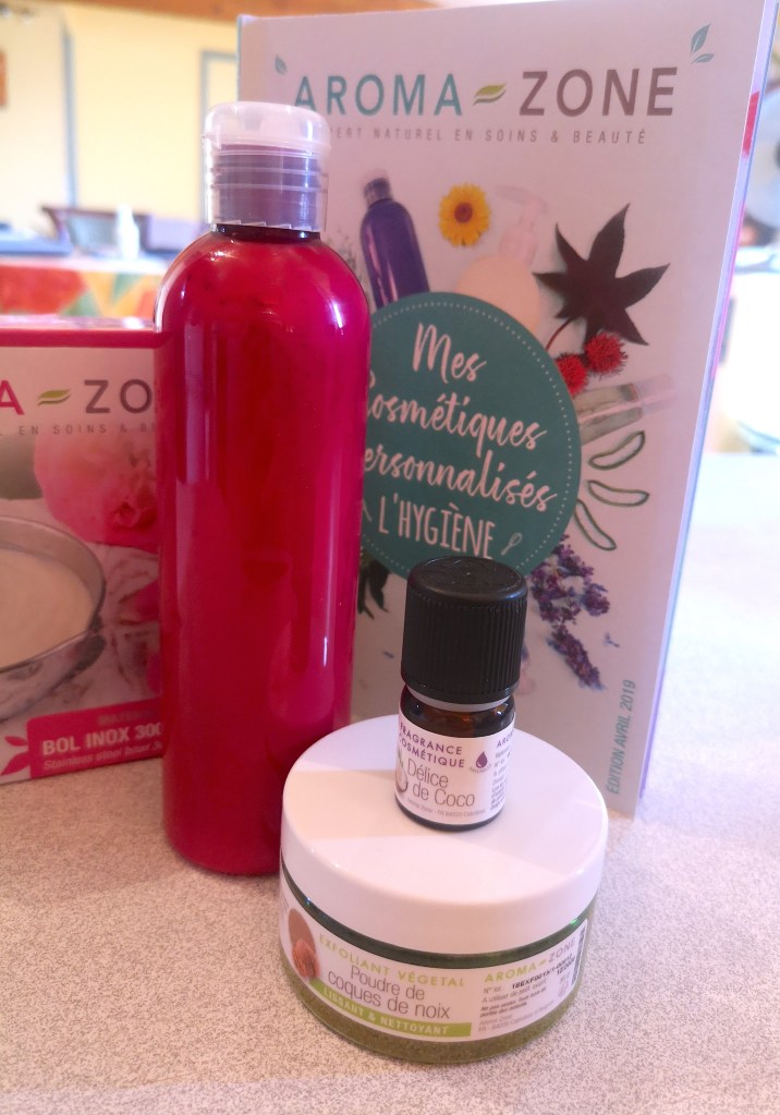 J’avais très envie de réaliser un gommage pour le corps, de manière plus naturelle…En effet, en matière de gommage, il y a un peu de tout sur le marché (du bon comme du beaucoup moins bon…). Je me suis donc tournée vers la crème de douche gommante proposée par AROMA-ZONE