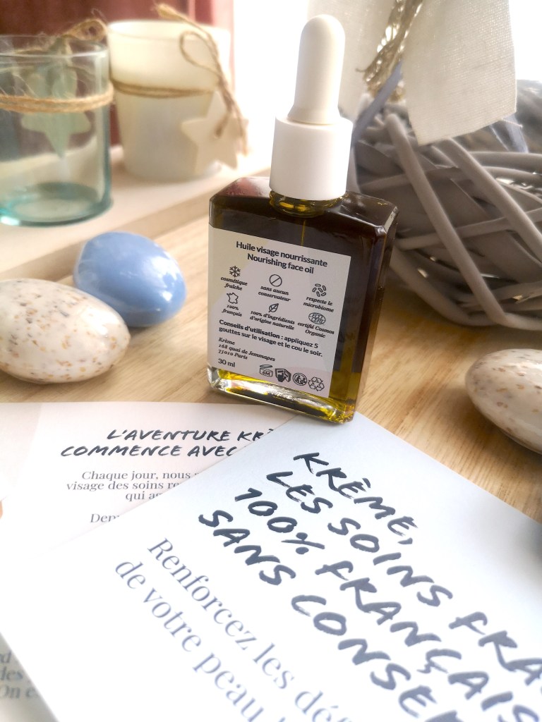 Un vrai coup de coeur pour cette toute jeune marque et cette huile visage ! Je vous invite vraiment, à aller jeter un oeil sur leur site ainsi que sur la plate-forme ULULE, où vous pourrez trouver leurs produits en pré-commande 😉 (#kremeparis #cosmetiquefraiche).