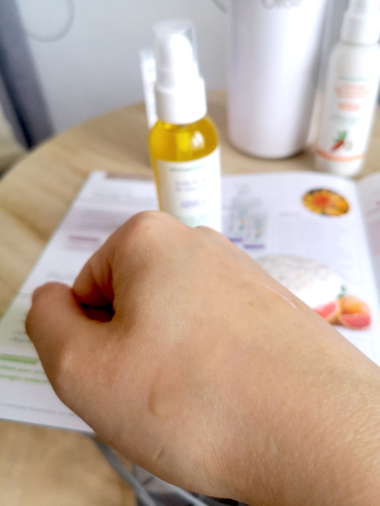 Une huile très agréable à utiliser ! La texture est très fluide et sans effet gras, après application 😉 Du côté du flacon-pompe, c’est exactement le même que pour le gel crème BIODAL, mais comme la texture du produit est beaucoup plus fluide, il délivre un peu plus de produit et c’est donc beaucoup plus pratique pour l’application !