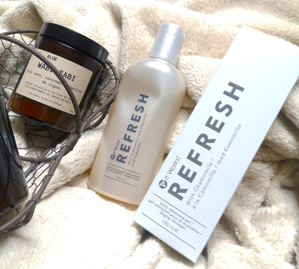 « It Works! Refresh est un gel nettoyant doux et sans savon qui contient des plantes révélatrices de beauté contribuant à l’élimination des impuretés, de la saleté et de l’excès de sébum, sans dessécher votre peau. Imprégné d’ingrédients à base de plantes et bénéfiques pour votre peau, It Works! Refresh rafraîchit, nettoie et apaise votre peau grâce à la camomille et à la calendula. »