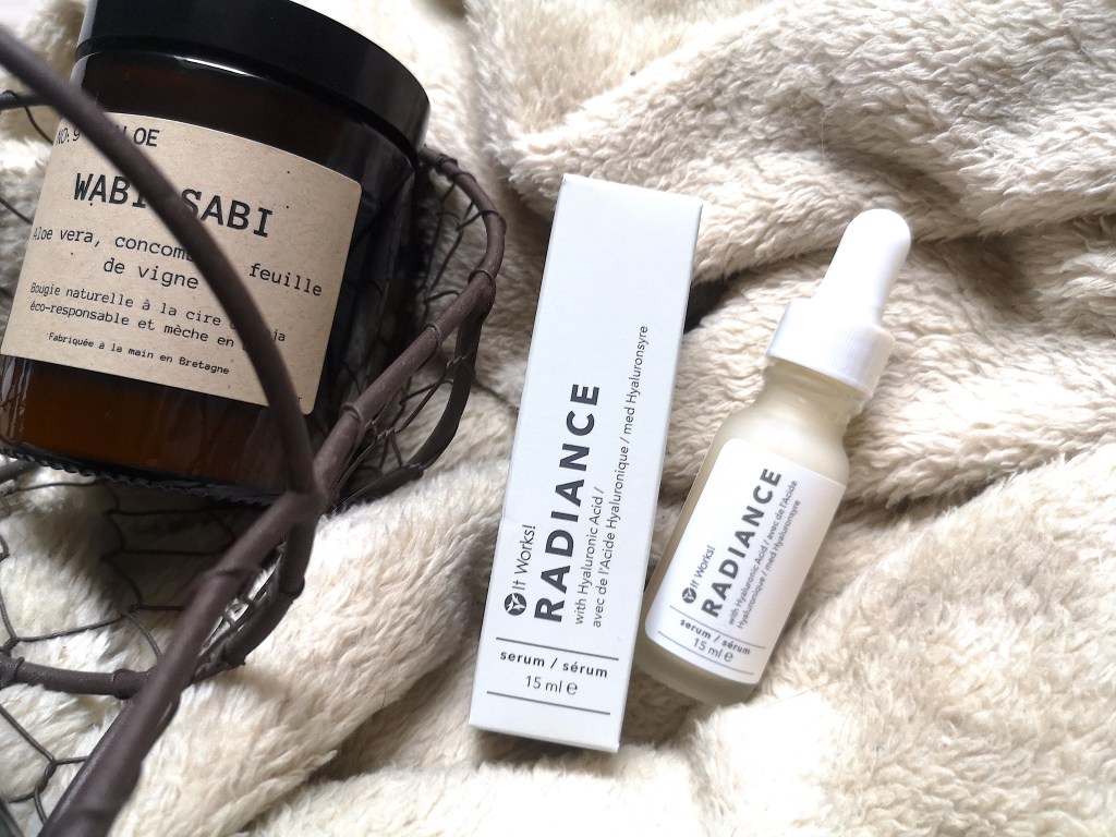 « Voici It Works! Radiance, un sérum hydratant à base d’acide hyaluronique. Cet ingrédient clé capable de retenir jusqu’à mille fois son poids en eau vous aide à obtenir une peau fraîche et lumineuse, tout en rajeunissant votre visage et votre cou. La formule contribue également à apaiser les peaux sèches avec de l’aloès, de la camomille et de l’hamamélis, garantissant ainsi un teint radieux au quotidien. »