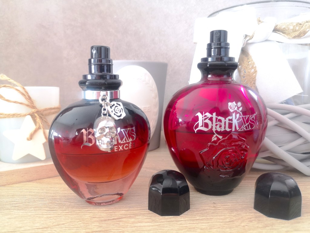 Deux fragrances à la fois très proches et en même temps sur la durée, elle ne sont pas réellement similaire…le côté boisé et un peu plus sucré de la version Black XS for her, permet une tenue plus longue et je la sent plus à la fin de la journée que la version l’Excès.