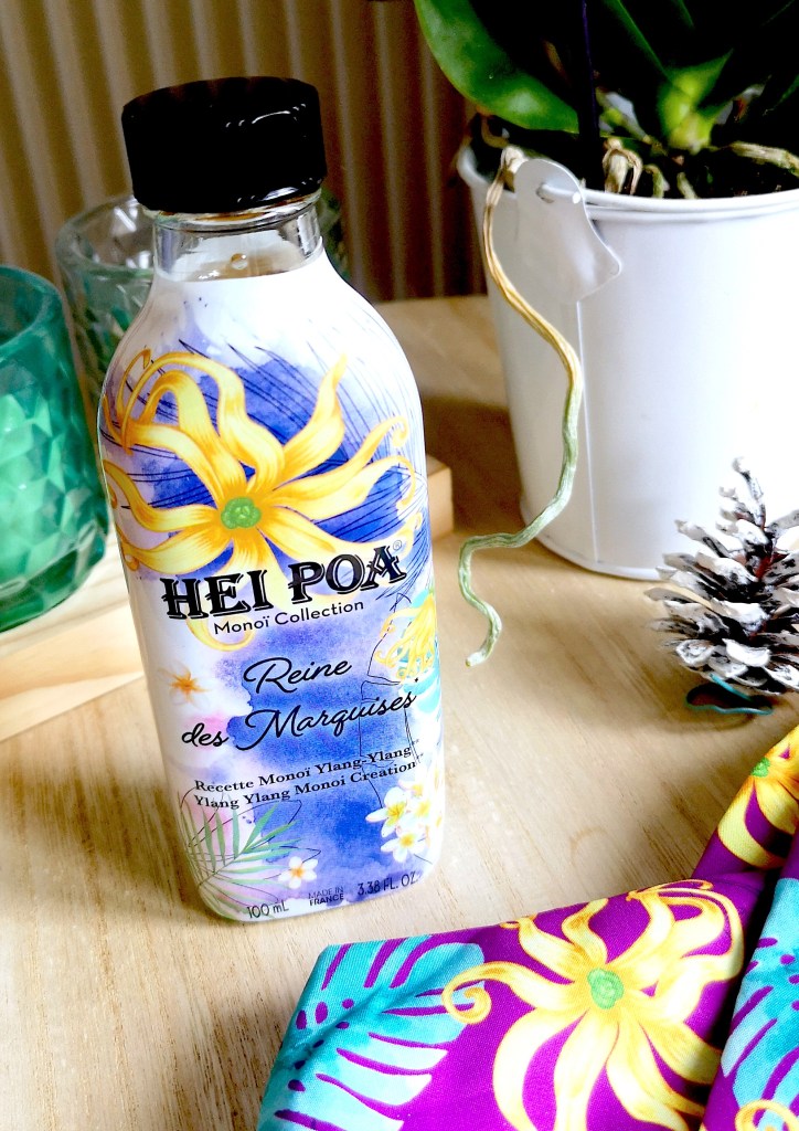 Aujourd’hui, focus sur le dernier Monoï Hei Poa baptisé Reine des Marquises*. Le nouveau Monoï de l’année 2021 (qui fait partie des collectors de la marque).