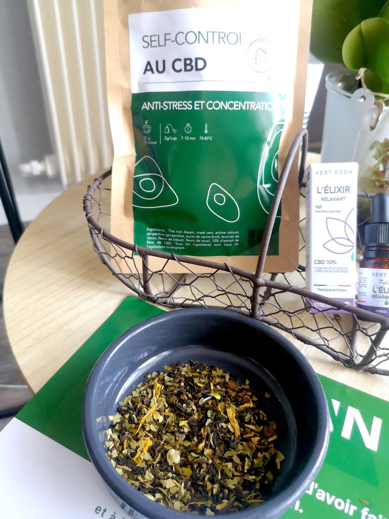 Le thé Sel-Control au CBD, anti-stress et concentration 100% Bio et made in France, a été conçu pour apaiser les crises de stress et bénéficier d’une meilleure concentration grâce à la combinaison de l’ensemble des ingrédients soigneusement sélectionnés pour leurs principes actifs à la fois calmants et stimulants : thé noir assam, maté vert, gingembre, écorces de citron, fleurs de bleuet, fleurs de souci et CBD.