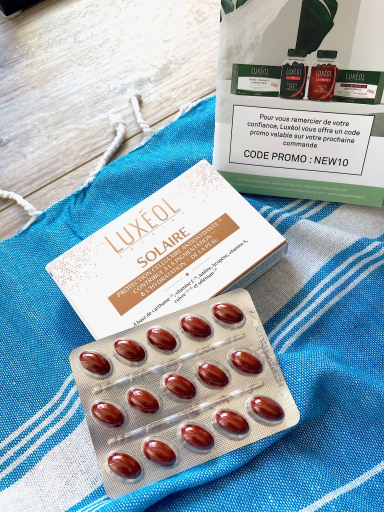 « Le premier complément alimentaire solaire de la gamme Luxéol qui aide à pigmenter la peau, protéger les cellules du stress oxydatif et hydrater la peau. »